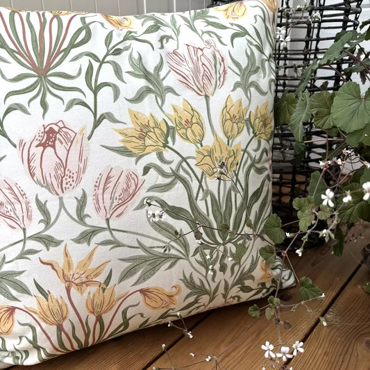 Tulpandröm kuddfodral från Lundbotex, gul/rosa/grön, 45x45cm