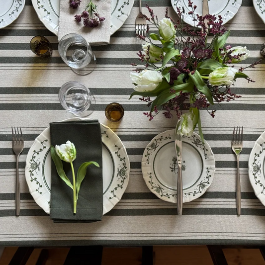 Isabell duk från Recycling by Wille, randig, grön/linne 140x250 cm