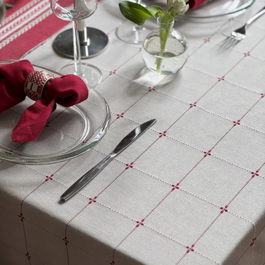 Mia duk från Recycling by Wille, beige/röd, 140x250 cm