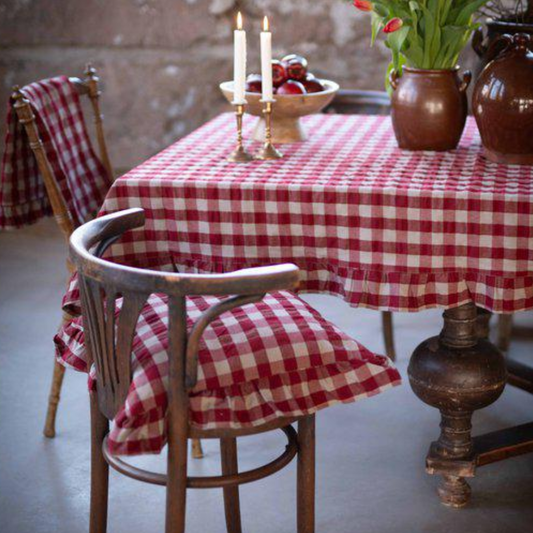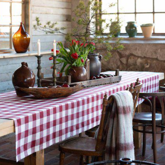 Moa duk från Fondaco, rutig röd/vit, 140x300 cm