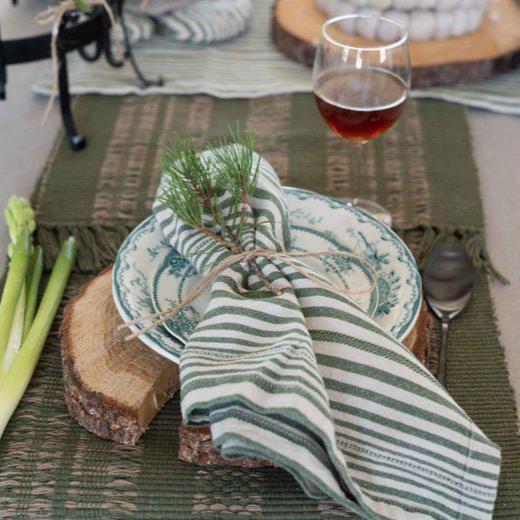 Karin tygservett från Fondaco, grön/vit randig, 50x50cm