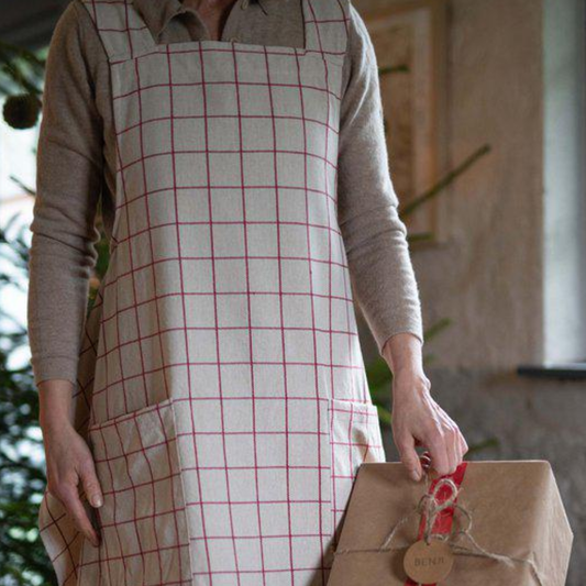 Axel förkläde från Fondaco, beige/röd, rutigt