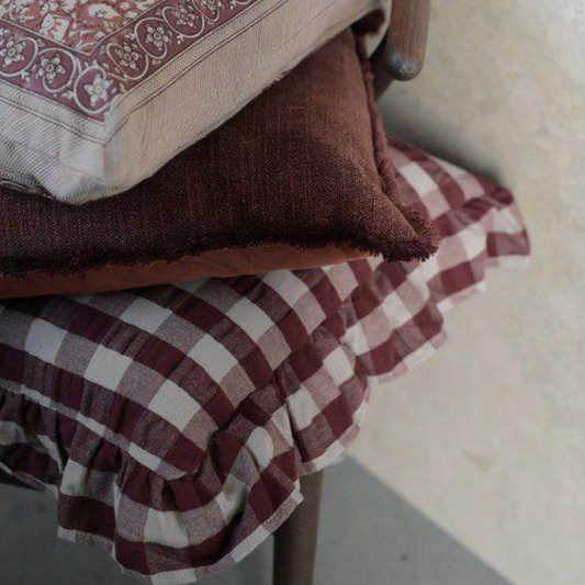 Lisa kuddfodral från Fondaco, rutigt, vinröd 48x48cm