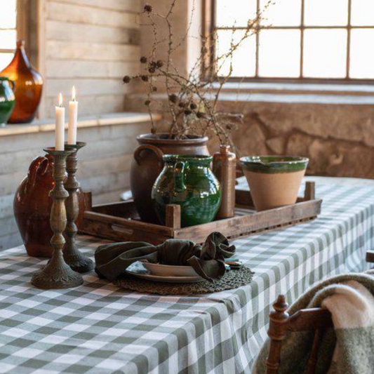 Moa duk från Fondaco, rutig grön/vit, 140x300 cm