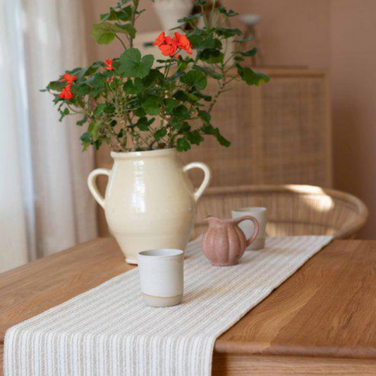 Lucas bordsduk från Fondaco, beige/vit, randig ,140x300 cm
