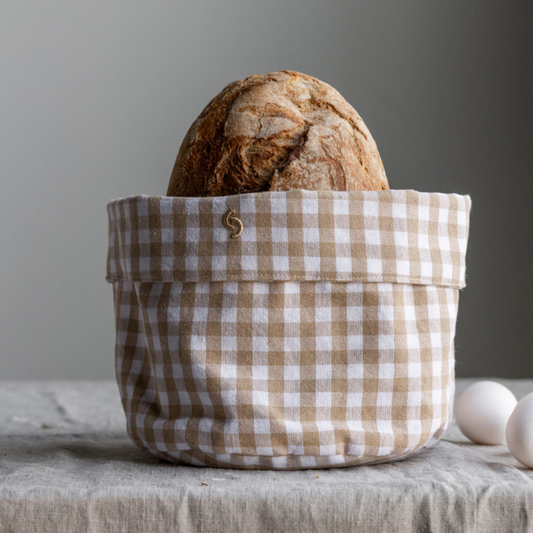 Axel grytlapp från Fondaco, beige/röd, rutig