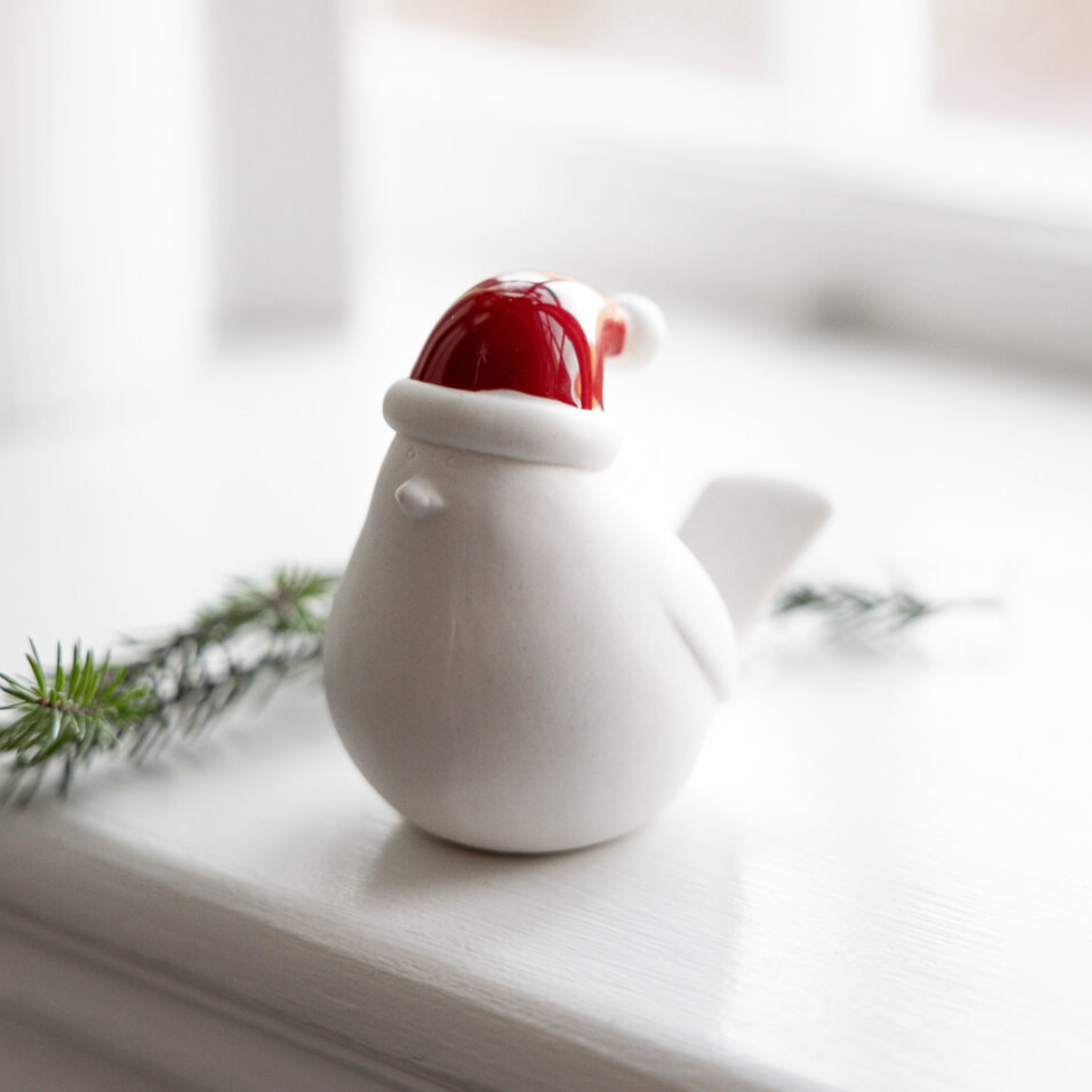 Dekorativ fågel i glaserad och matt keramik. Elin har en glaserad tomteluva och sprider en varm och stämningsfull julkänsla i hemmet. Fin att placera ensam eller tillsammans med andra juldekorationer.