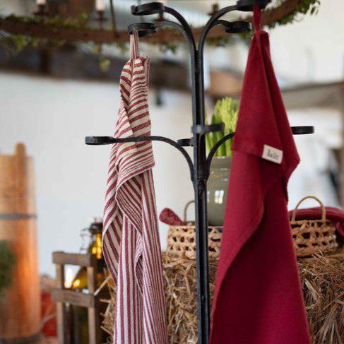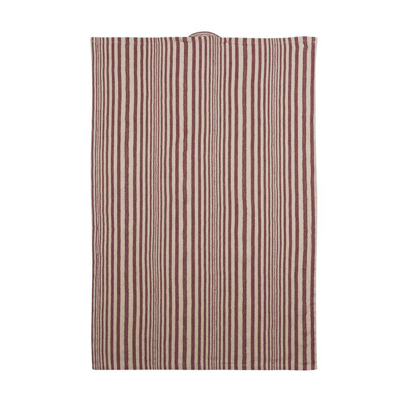 Kökshandduk i bomull med garnvävda ränder som ger en rustik känsla. Enzymtvättad för att få en mjuk och behaglig yta, samtidigt som den behåller sin struktur och hållbarhet över tid. Perfekt som en dekorativ och praktisk detalj som ger köket ett hemtrevligt intryck.