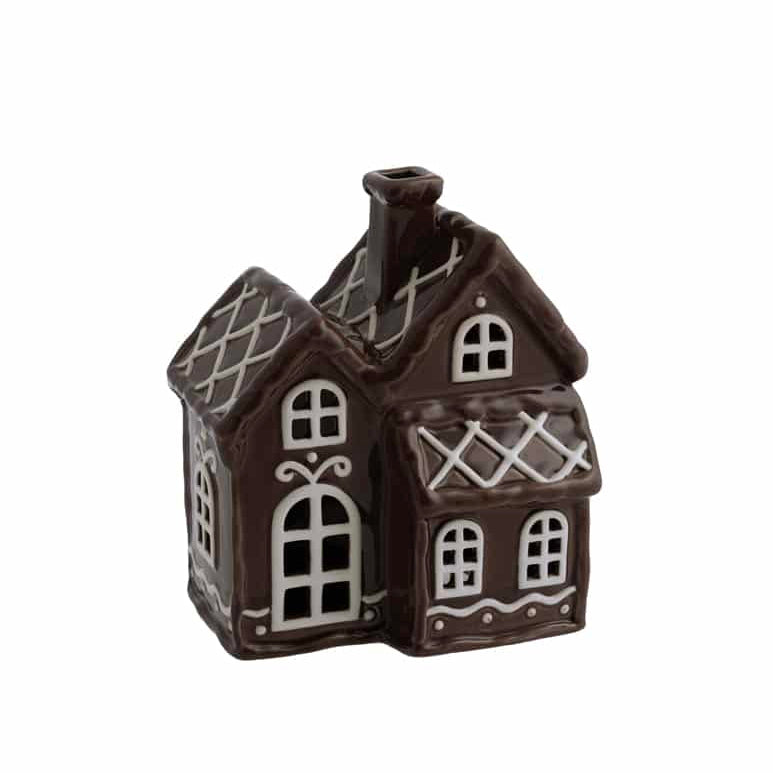 Pepparkakshus i glaserad keramik. JULBYN är serien med olika hus i keramik där det finns oändliga kombinationsmöjligheter. Husens olikheter i form och storlek gör det tacksamt att skapa och dynamik oavsett om du väljer att kombinera tre eller inte.
