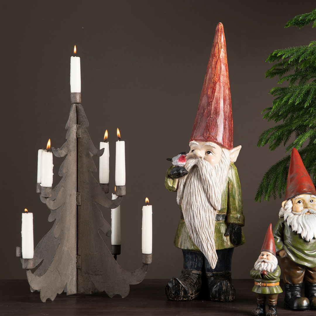 Denna vackra ljusstake i form av en grann är tillverkad i metall och designad för att hålla kronljus. Med sin stiliga och enkla form ger den ett elegant och tidlöst intryck i ditt hem. Perfekt för att skapa en mysig stämning på bordet eller som en fin dekoration under högtider.
