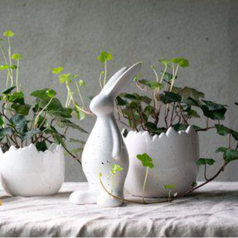 Mona kruka från Wikholm Form. En charmig kruka i form av ett äggskal, vit i mjuka toner. Perfekt för vårblommor eller påskdekorationer, sprider omedelbart påskkänsla på bordet eller fönsterbrädan
