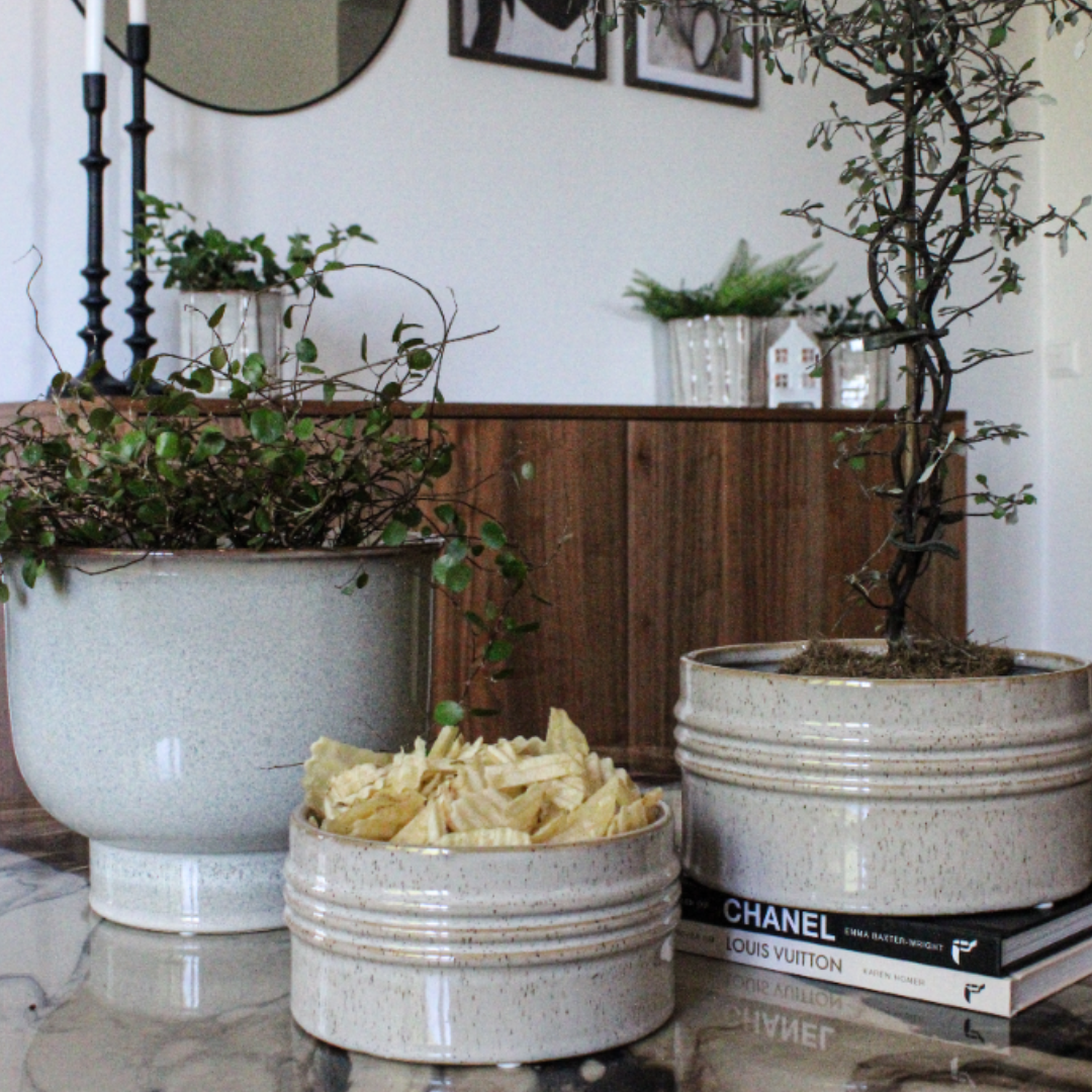 Denna fina planteringsskål från Västanvinden har en beige färg med ett mjukt melerat mönster. Perfekt för att plantera växter eller som en dekorativ detalj i ditt hem.